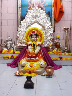 At that time Lord Dattatreya appeared at their threshold in the form of a renunciate sadhu (saint), bearing the staff and the water-vessel (Kamandalu) and asked for food. The housewife, with immense faith that the visitor was none other than the Lord to whom the whole annual ceremony was being offered, gave Him food even before the Brahmin guests were fed!